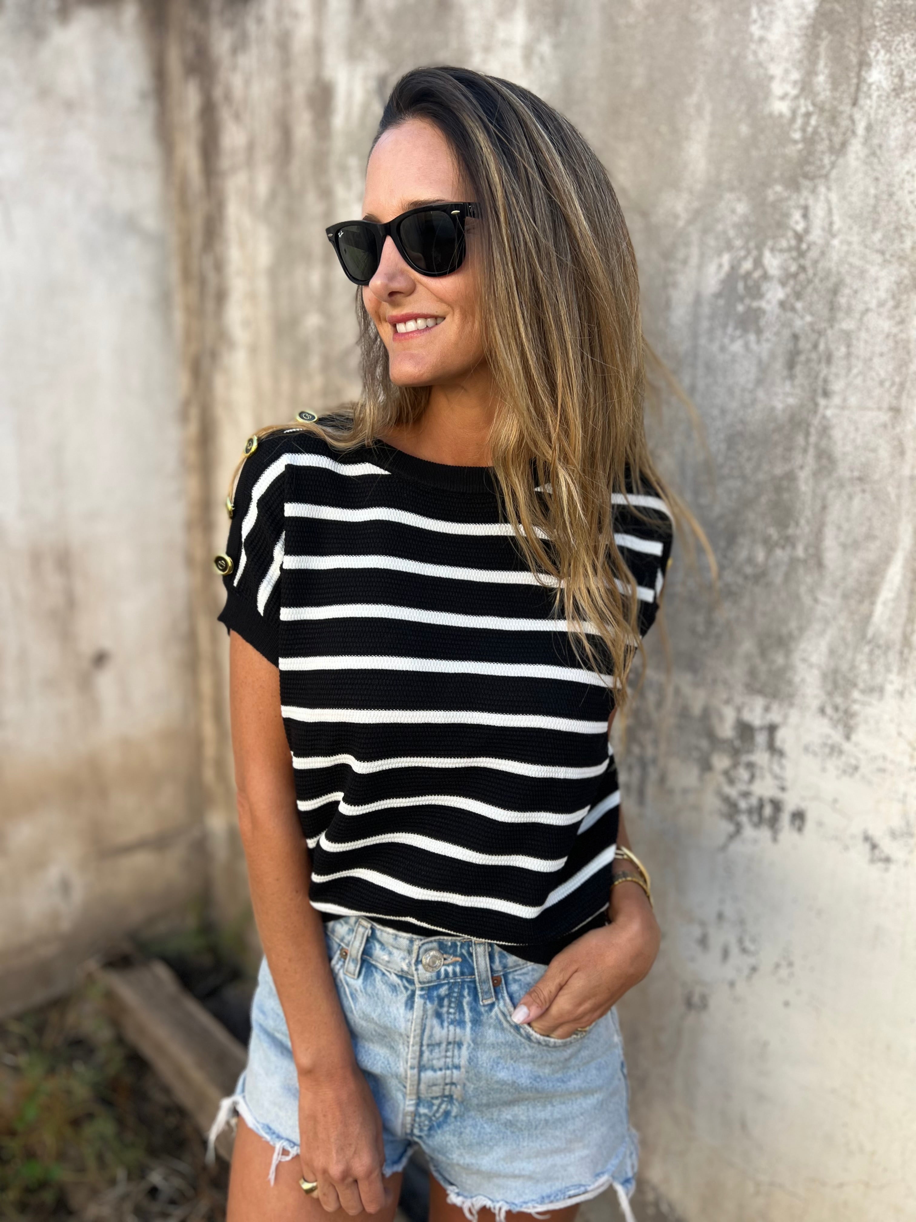 Polera tejida navy blanca