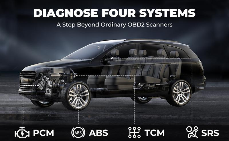 Escáner de diagnóstico automotriz con funciones de reinicio de aceite/SAS/acelerador, diagnóstico de motor/ABS/SRS/transmisión y reconocimiento automático de VIN