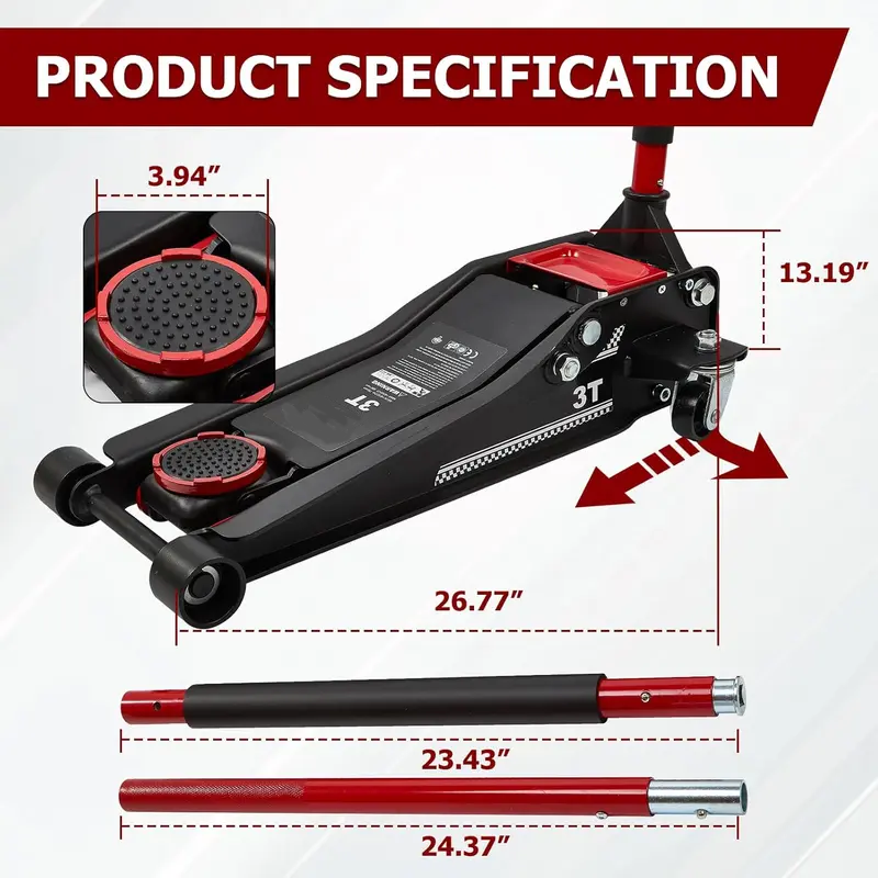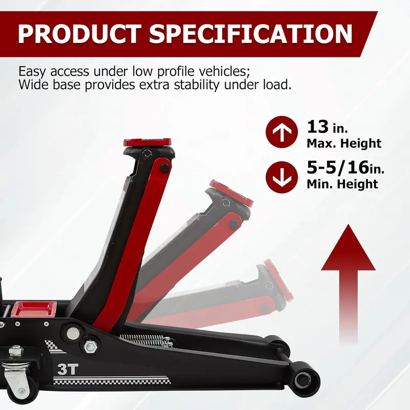 Gato de piso de carreras de perfil bajo de 3 toneladas para trabajo pesado